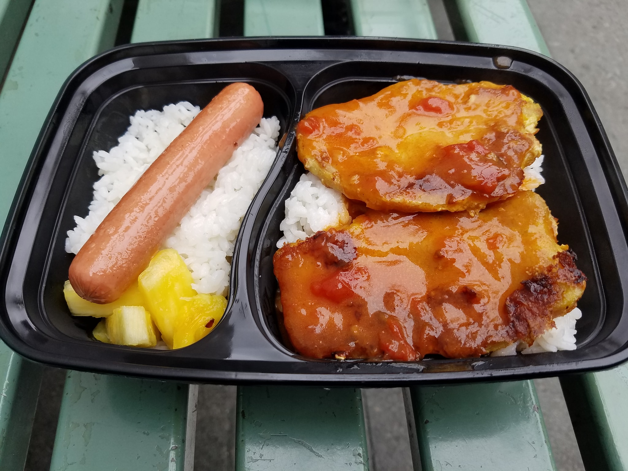 Hungry after a lots wandering #OnTheMenu Pork Chop Lunch combo with Pineapple and sausage…now in was originally going after the sweet tooth pineapple bun…but figured I needed some food food. The pork itself with the marinade was great…paired up with the rice…now the sausage…or Hot dog…lol was just normal…it would have been great if some more sauce was available…plus sude… it came with a drink as well. Takeaway only. #FoodMission #WheresNate #RoamingHongKong
