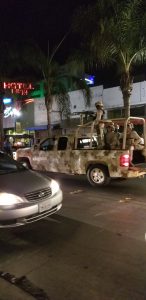 So the military patrols the streets with a Nstv. Havent seen these or armored patrol on public streets since I was in the middle east. Soldier is posed and ready. This unit is ready whenever and whatever pops off. 18 soldiers in 2 nstv…yeah… #ThisIsMexico. In the meantime…off to.the next bar.