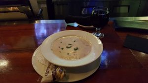 Alright…new bar…time to nibble on something New England style…had to get the final #FoodMission of Connecticut down. #OnTheMenu New England Clam chowdah #WashedDown with a Warlock stout…well 2 right now. Lol. Btw…#GoBlue #PromoNate #WheresNate #RoamingHartford