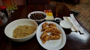 So um finally getting a #FoodMission going…yeah…didnt eat anything all day…glad my appetite came back…just had to #PowerThrough and not my mind catch up to me. #OnTheMenu seafood Jajangmyun with beef dumplings. I think im still on that #jajangmyun hunt…so far this was ok…not epic…still good though…shrimp, oysters, and octopus servings included. The dumplings were meh…just a snack…nothing to wash it down with though…ill make.up for it tomorrow. But for now…food and then sleep. #KDMFood #KoreaTown #PromoNate #WheresNate #RoamingLosAngeles