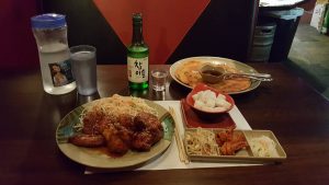 Laundry Done. #FoodMission start. From Oakland and back to SFO. The #FoodStruggle continues with the lack of things open…but found my way downtown…and #OnTheMenu Korean Fried chicken with a kimchi pancake…#WashedDown with #Chamisul…now this is the 1st place ive come across in cali for the #KFC…ive had the majority of my tastings in Dallas…idk…well see how this place fares…already they are missing the gloves…and what’s up with the pajeon? Its like paper thin…Ive had better at #HMarts…and the KFC…meh…not that spicy…and just didnt have that umph to it…wheres the KFC capital of the world at. Disappointed…but hungry…still ate it. At least the two Chamisuls didnt disappoint…even though I wanted #bekseju. #PromoLife #PromoNate #WheresNate #RoamingSanFrancisco…ummmm. [10min later] Not a total fail…but at least the Chamisuls were great… 🙁