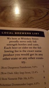 And finally a #FoodMission to appease my stomach…1st Choice was closed for MLK day…so found and secondary… #OnTheMenu Fried pickles (Tempura Kosher Dills with spicy remoulade) and Pork Belly corn dogs (braised pork belly, Corn meal batter, and soghum mustard) #WashedDown with Jive ass Turkey (Wild Turkey 101, Apple jack, Basil, cranberry, and hard cider) and a Boulevard Tale-Tale Tart Sour Ale…overall great…the fried pickles were meh…nothing was spicy about the sauce…a little more spice and flavor woulda made it worth it…the pork belly corn dogs…yes…especially with the mustard sauce. Drinks…amazing…amazing and I love the disclaimer. Lol s/n I have disappearing photos…the Jive ass Turkey pic went poof. #PromoLife #PromoNate #WheresNate #RoamingSaltLakeCity
