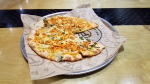 Getting my Ninja turtle on #FoodMission pizza style. #OnTheMenu Buffalo Chicken Pizza. Was so hungry…ate a slice before I realized I missed a pic. The chicken was great…wasnt.like the super processed cubes and you can taste the blue cheese mixed with the mozzarella. #PromoLife #TourLife #PromoNate #WheresNate #RoamingSanJose