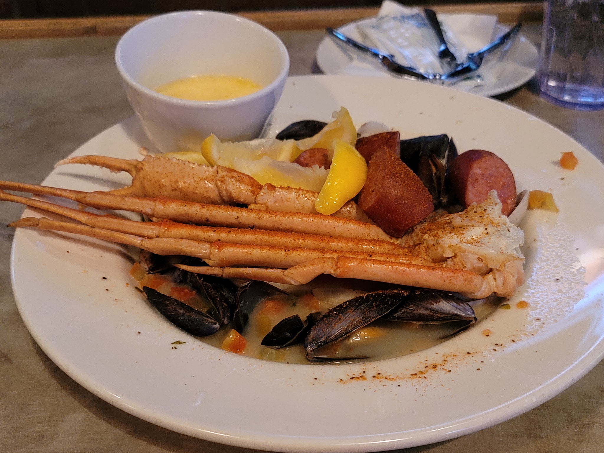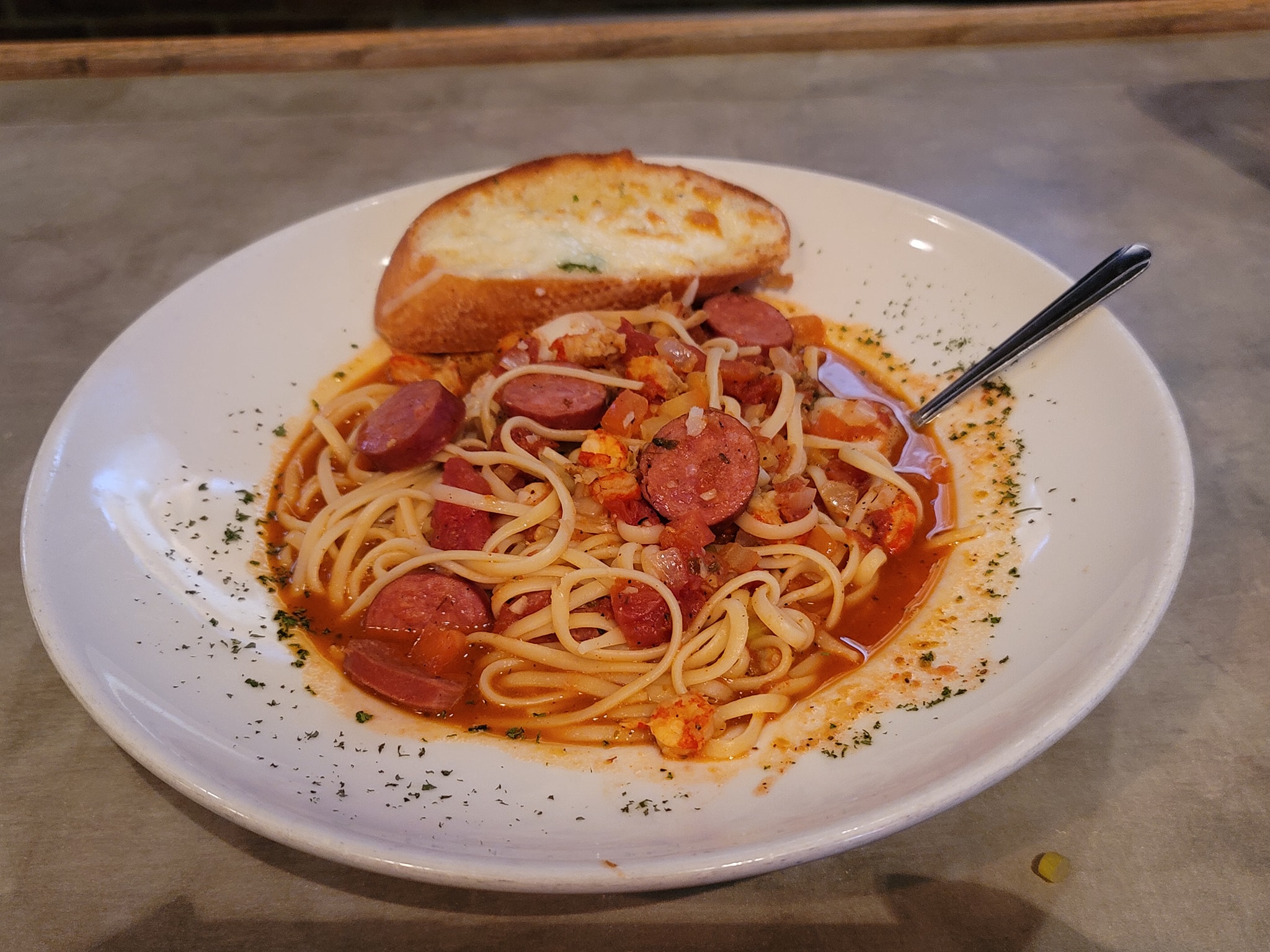 #OnTheMenu custom boil with Crab, mussels, Classic and anomalies sausage, followed by Jambalaya #WashedDown with Shucks Long Island. So, didn’t expect a boil to come in a plate…but overall still great…could’ve used a Lil more old bay…(thus the pot or bag boil). The jambalaya was interesting…didn’t expect it to come linguine style…but the alternate server never said anything nor asked if I wanted the traditional rice or the latter. If deja vu happens, I’ll pass on the Noodles.