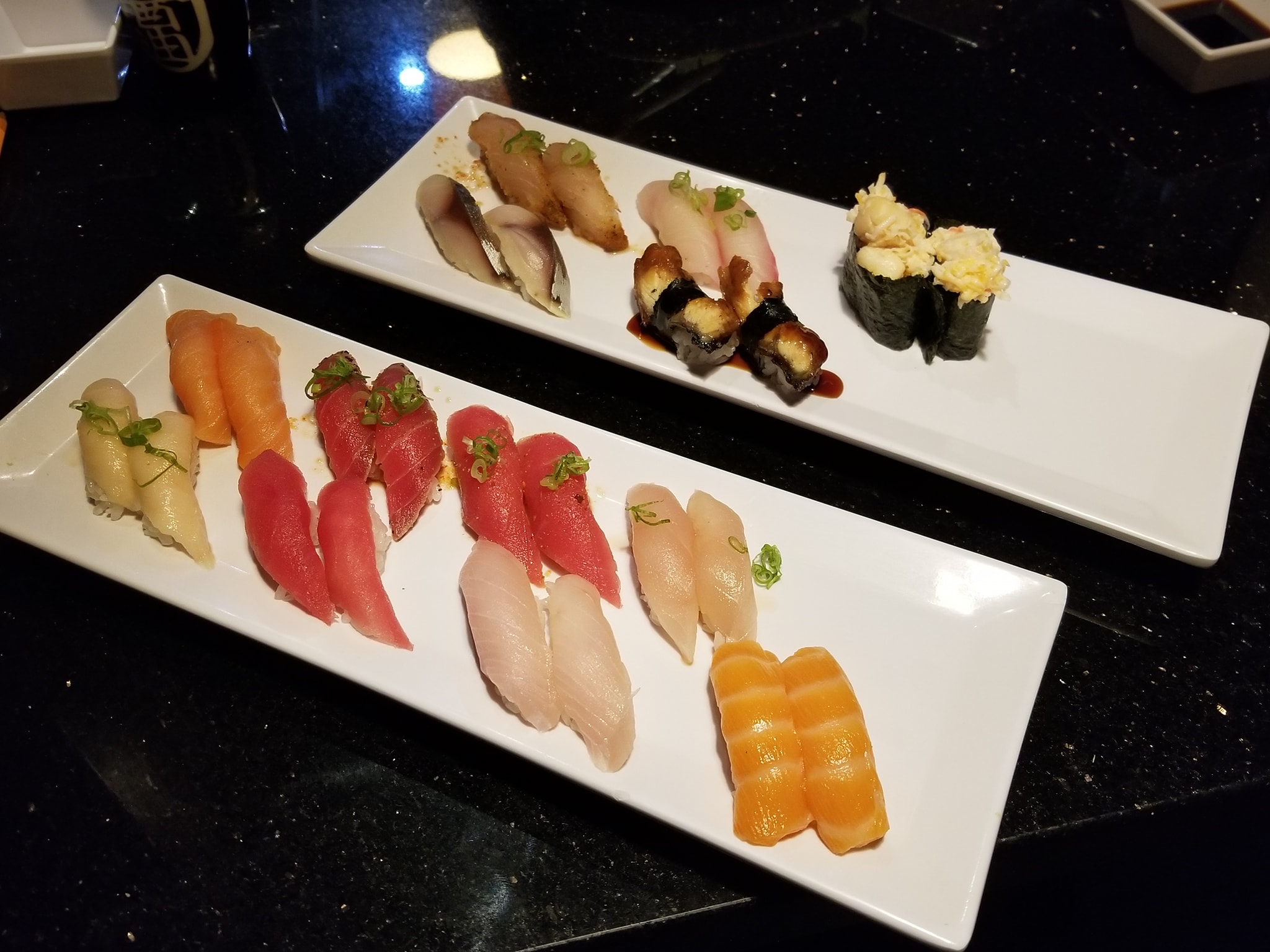After the eventful day of today…I really needed to quell my appetite #OnTheMenu Nigiri (Tuna, Yellowtail, Garlic Tuna, Seared Tuna, Albacore, Cajun Albacore, Salmon, Smoked Salmon, Unahi, Super white Tuna, Red Snapper, Scallop, Mackerel) with edamame, spicy salmon, cajun albacore, spicy tuna, spicy yellowtail sashimi, hot mama roll, samurai spicy roll and the screaming o. #WashedDown Hot Sake x2. Service initially sucked but the sushi was amazing and ayce. #SushiComa #WheresNate #RoamingLasVegas