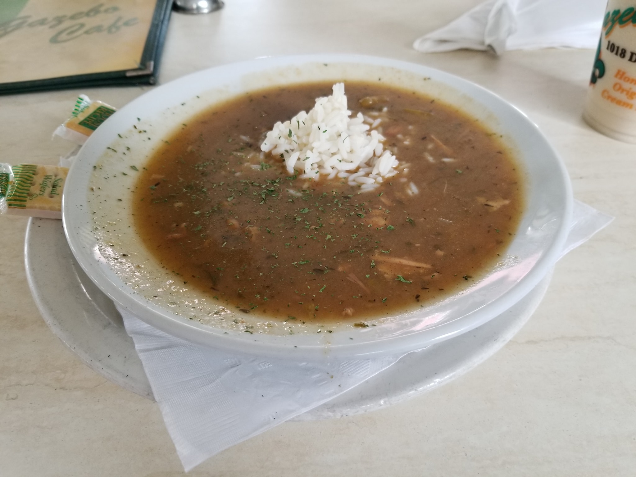 And rounding out #FoodMission #OnTheMenu Gumbo. #WashedDown with a White Russian frozen Daiquiri. The gumbo…was pretty basic…and the serving size was minimal…like this should be the cup size. The bowl itself.was pretty deceiving…you would think the bowl sinks in from the edge…nope…theres a “second lip” the actual bowl starts another inch or two into the diameter…oh well…and then the Daquiri…nah…idk…it seemed like it was missing something…like the booze. Lol Maybe it’s because I got an not fruit flavor…hmmm..who knows…