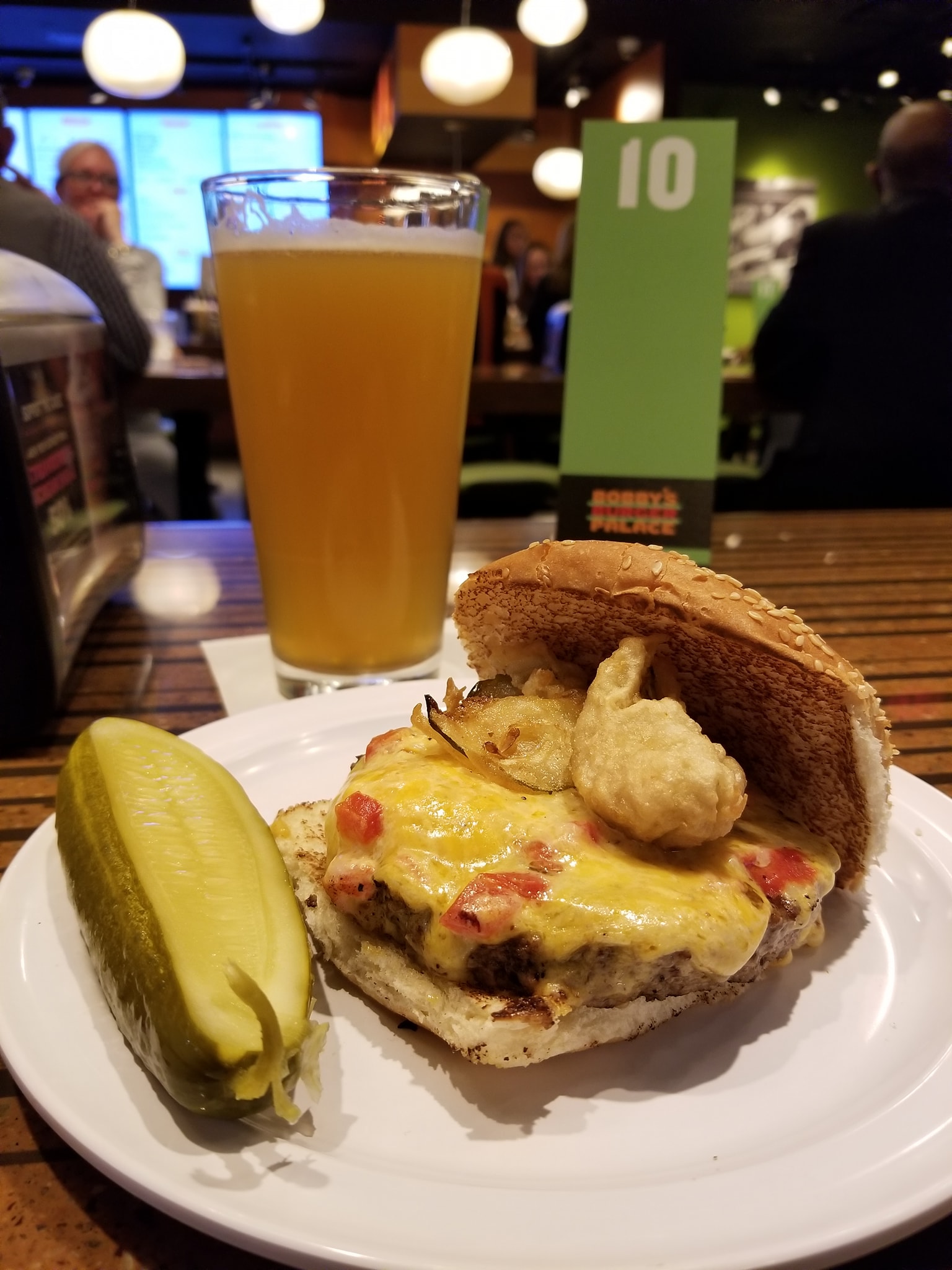 Ok. Final #FoodMission in ATL. Didnt feel like roaming too far off. #OnTheMenu The ATL burger #WashedDown with a Sweetwater G13. Haven’t had Bobby’s Burgers since Vegas. The Atl burger is rich with Pimento Cheese and fried pickles on top. Didnt get crucified here…nor did I opt for the fries. Burger overall really filling. Then cheese added a sharp contrast to the flavor…but I would appreciate a few more fried pickles on the burger. The slew of burger sauces allows you to kinda tune the taste of your burger..just don’t douse it