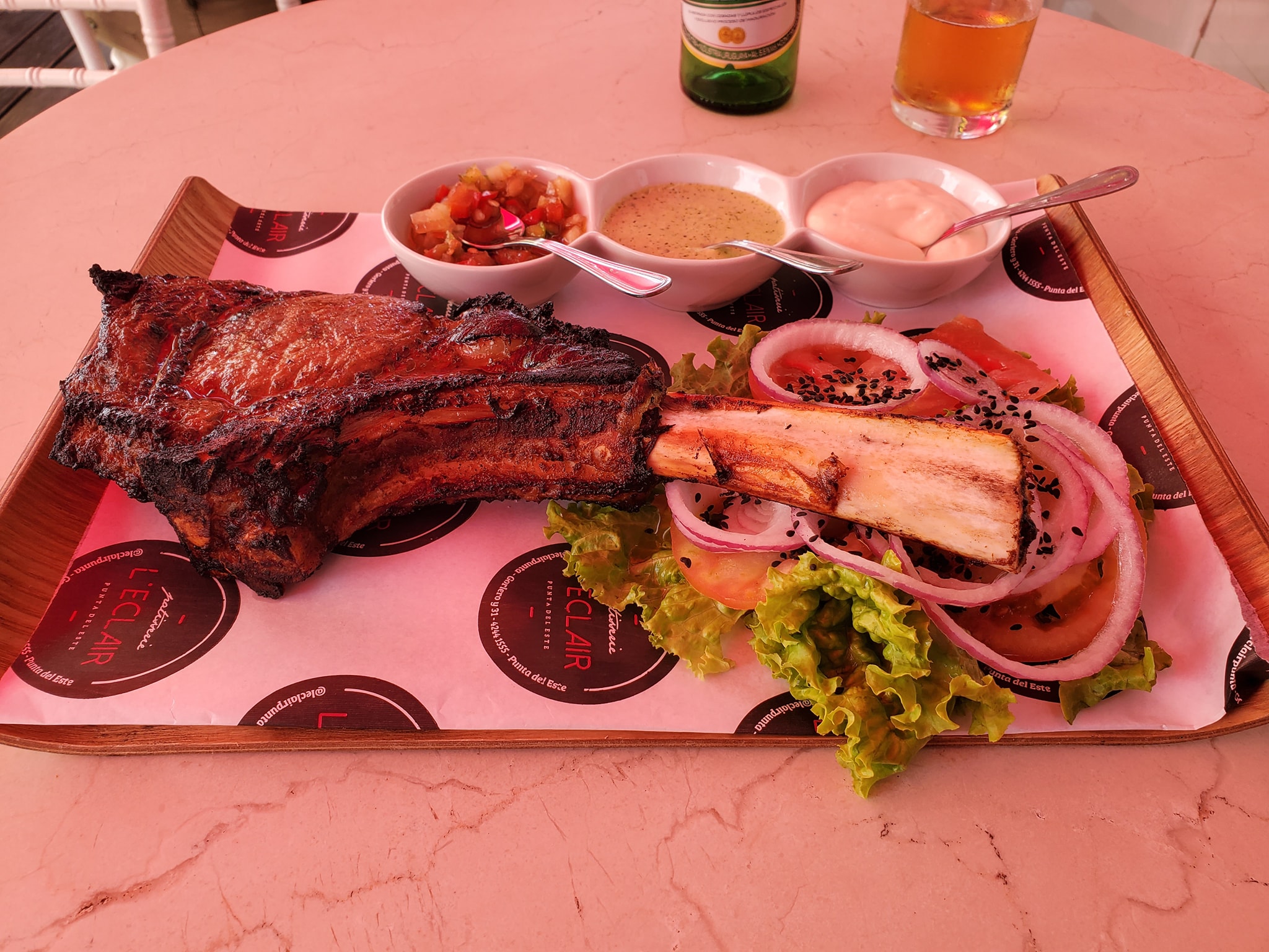 Bring in the Carne. #OnTheMenu Tomahawk with Ensalada #WashedDown with Zillertal. So steak in the morning…not bad…had a little more fat on the meat but overall cooked nicely and seasoned well…but kinda small for the price. Too bad I dont have a dog to give the bone to. Lol Environment is beach restaurant type…with a lot of 50s/60s american music playing…I get the vibe that I’m in diner. Lol and they forgot to give me forks and knives…but they charged me for it? 60 pesos #FoodMission #WheresNate #DiscoveringUruguay #RoamingPunteDelEste