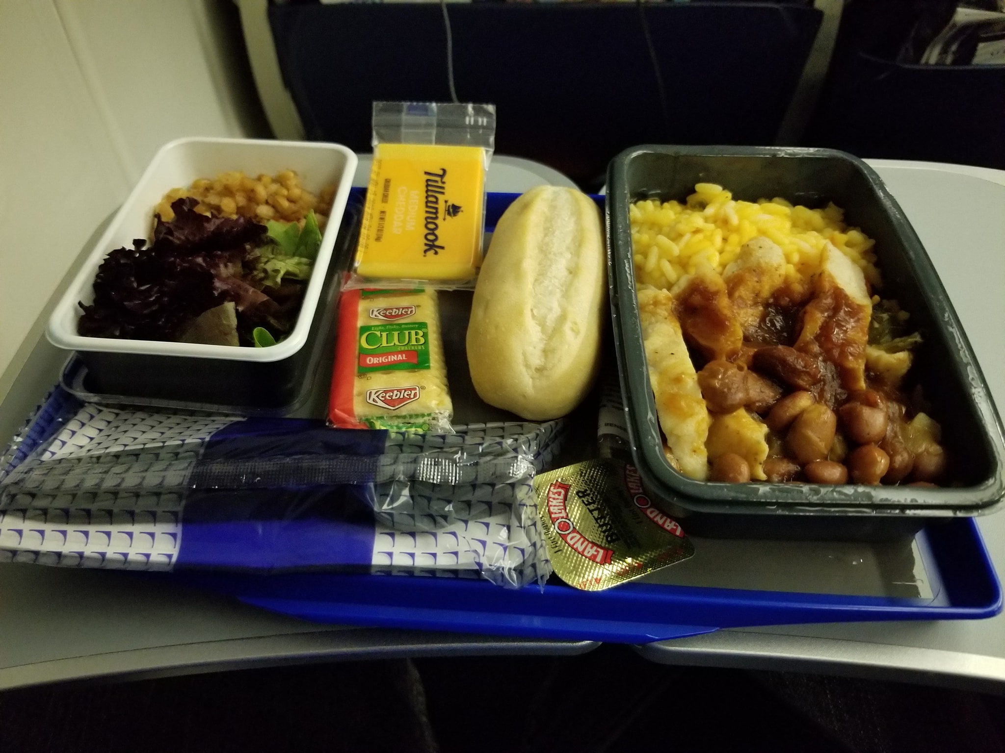 Eating thousands of feet in the air…#OnTheMenu Spanish Rice with Fajita seasoned chicken and ranchero beans Quinoa salad and Tillamook cheddar cheese. #WashedDown with a Shiner. This was a pretty good snack…tasted pretty good. And with 2x shiners…its a good way to get the iris. #FoodMission #WheresNate