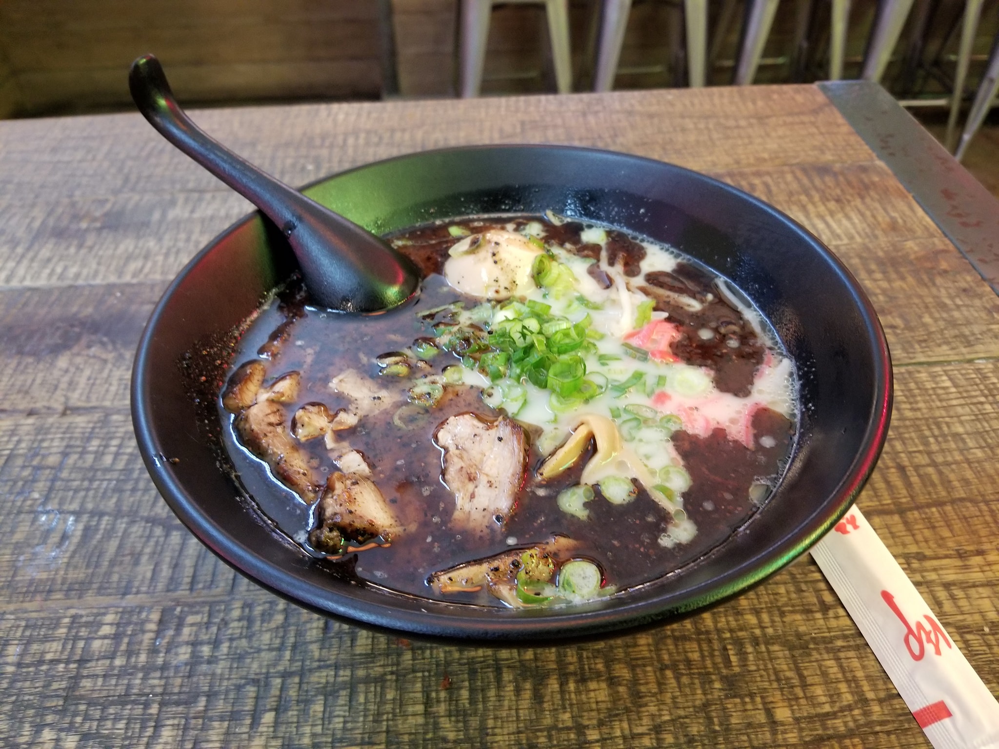 So on my wandering…I figured I needed some calories to burn. Stopped in the Corporation Food Hall and had8 choices… #OnTheMenu Spicy lack garlic ramen with Pork Gyoza. The broth was just right…however…I think the guy gave me the regular black garlic and not the spicy one. Still good though. The gyoza…(which was the reason I stopped) was a little lacking…even the chili oil wasnt that spicy. I should carry around some gochujang with me. Lol Overall cool food hall vibe…and plenty of choices for you…plus var in the back. Lol #FoodMission #WheresNate #RoamingLosAngeles