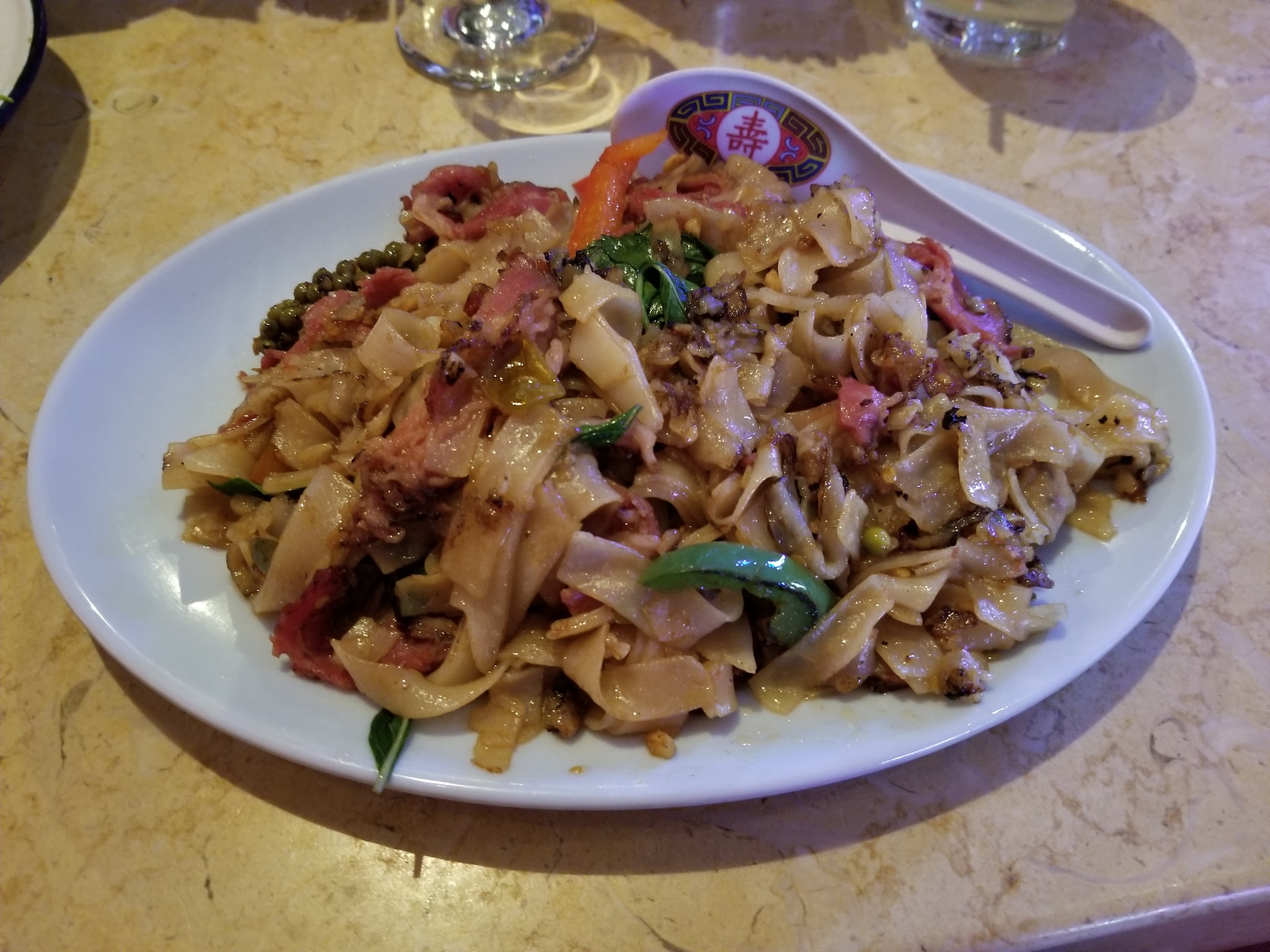 So found my way down Sunset in the botto. #OnTheMenu Pork Toro and Pastani pad kee mao #WashedDown with a spicy thai margarit the pork Toro was like juicy bacon with that sweet and spicy dip. The Pad Kee Mao was super spicy and the pastrami gives it a fusion type of kick. Cool spot to hang out at and nice.drink menu and get pretty packed