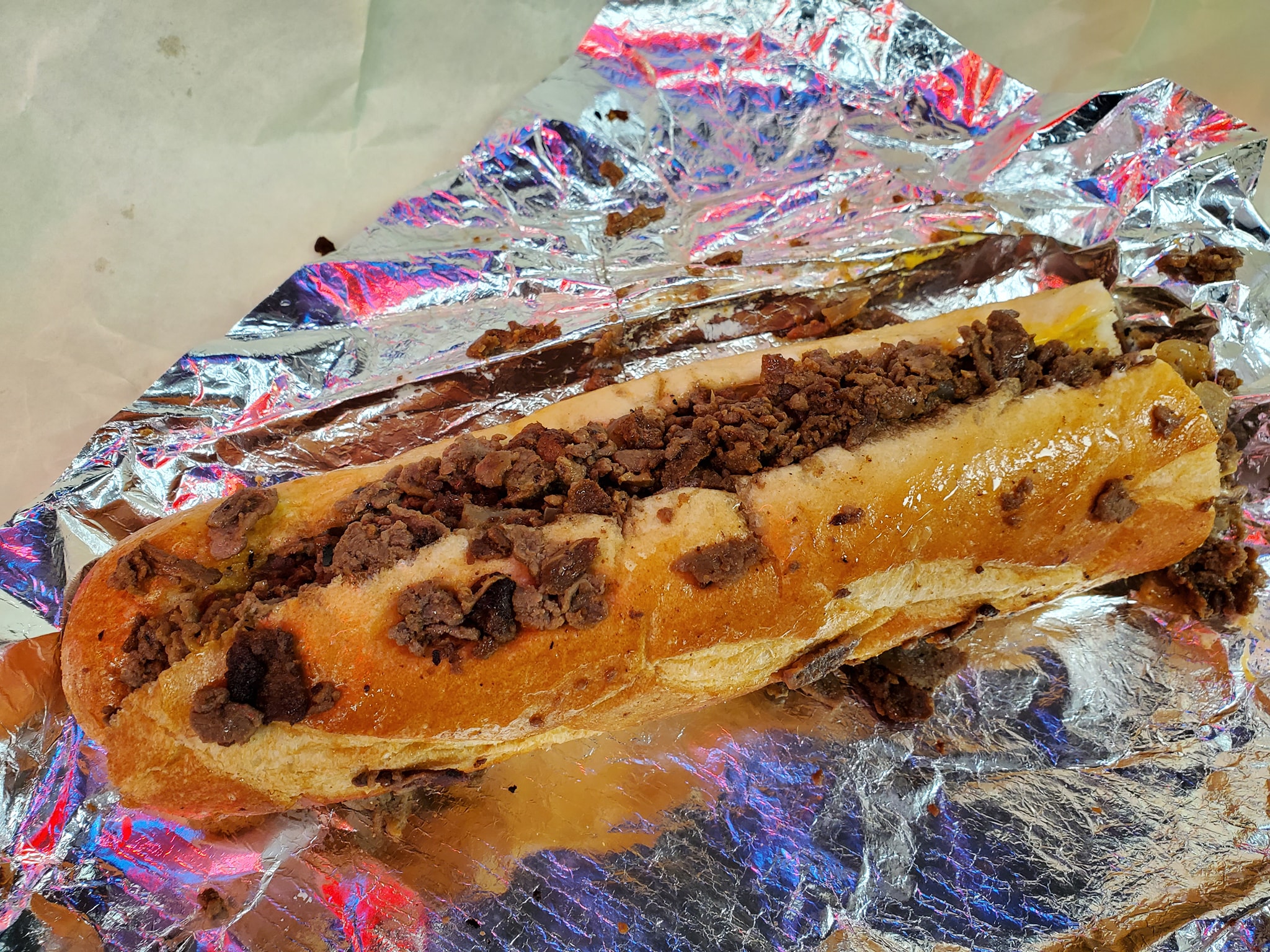 Quick stop in Philly…for a Cheesesteak. #OnTgeMenu Cheesesteak with onion an whiz. This place is located in north philly. Small spot located on a corner and connected to a bar. Three choices of cheese and they mayo the bun. Meat well seasoned and comes out hot. Bread seems to melt right into the meat Small seating area…and you’re kinda in the hood. #FoodMission