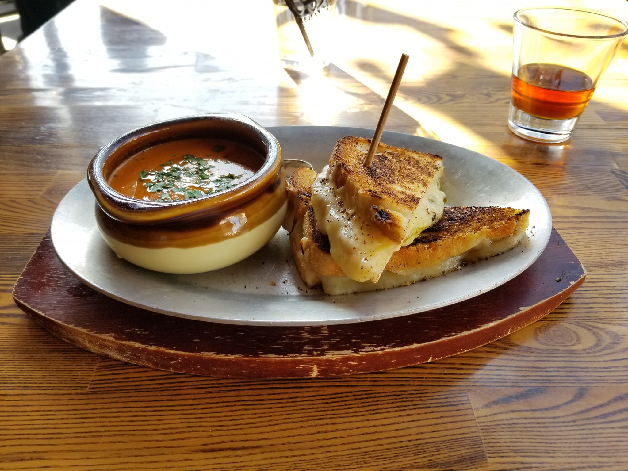 Never too early for Whiskey. Lol #OnTheMenu Irish Cheddar Grilled Cheese and Tomato soup #WashedDown with Reikey Ginger Wiskey. It’s been a minute since ive had some good grilled cheese. This one didnt dissapoint. Soup was a great addition…rarely you get soup with a grilled cheese. The sandwich itself was nicely mide… pickles gave it the bite you need to distract you from the cheddar cheese. #WheresNate #RoamingLasVegas