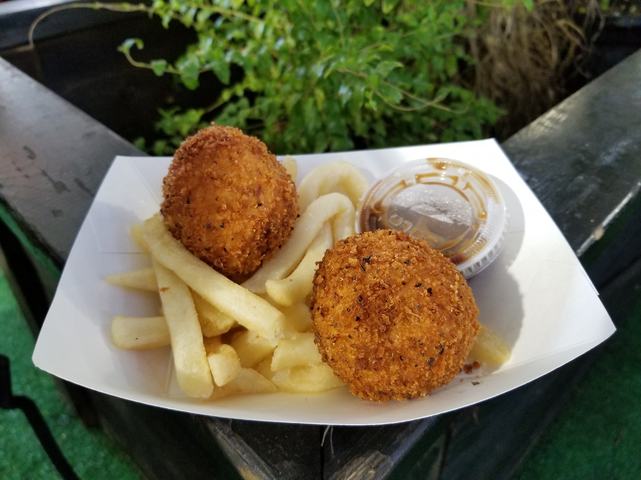 Ok…rounding out number 7 #StateFairFoodMission #OnTheMenu. Deep Fried Shepards Pie. Take cheddar cheese and cream with mashed potatoes. Roll it into a ball and fill it with ground beef and mixed vegetables…basically your Shepard’s Pie..and have a little to dip. Nice attempt…biggest gripe…they ran out of the green bean fries…so I got left with fries…soggy bland nasty fries. An ok attempt…not a fan of peas though. Yes I bit and picked them out. 17 tickets. #ICameHereForTheFood #FoodMission #WheresNate #RoamingDallas