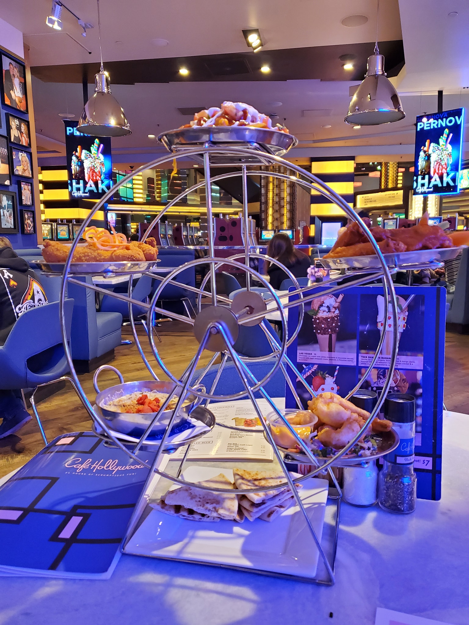 Thank goodness for something open 24hrs in your hotel…So…after all of today…I needed to get more food…and with it getting close to the witching hour…selections grow short on the strip. #OnTheMenu High Roller Sampler (world Famous Chicken crunch, texas tostadas, buffalo wings, five cheese dip and jumbo tempura shrimp).would it be wrong to say I ordered.this for the ferris wheel? Lol Im really mad that it doesnt spin though…shrimp tempura seemed to americanized…tostadas, buffalo wings and chicken tenders you csnt mess up too much. .#FoodMission #WheresNate #DiscoveringNevada #RoamingLasVegas