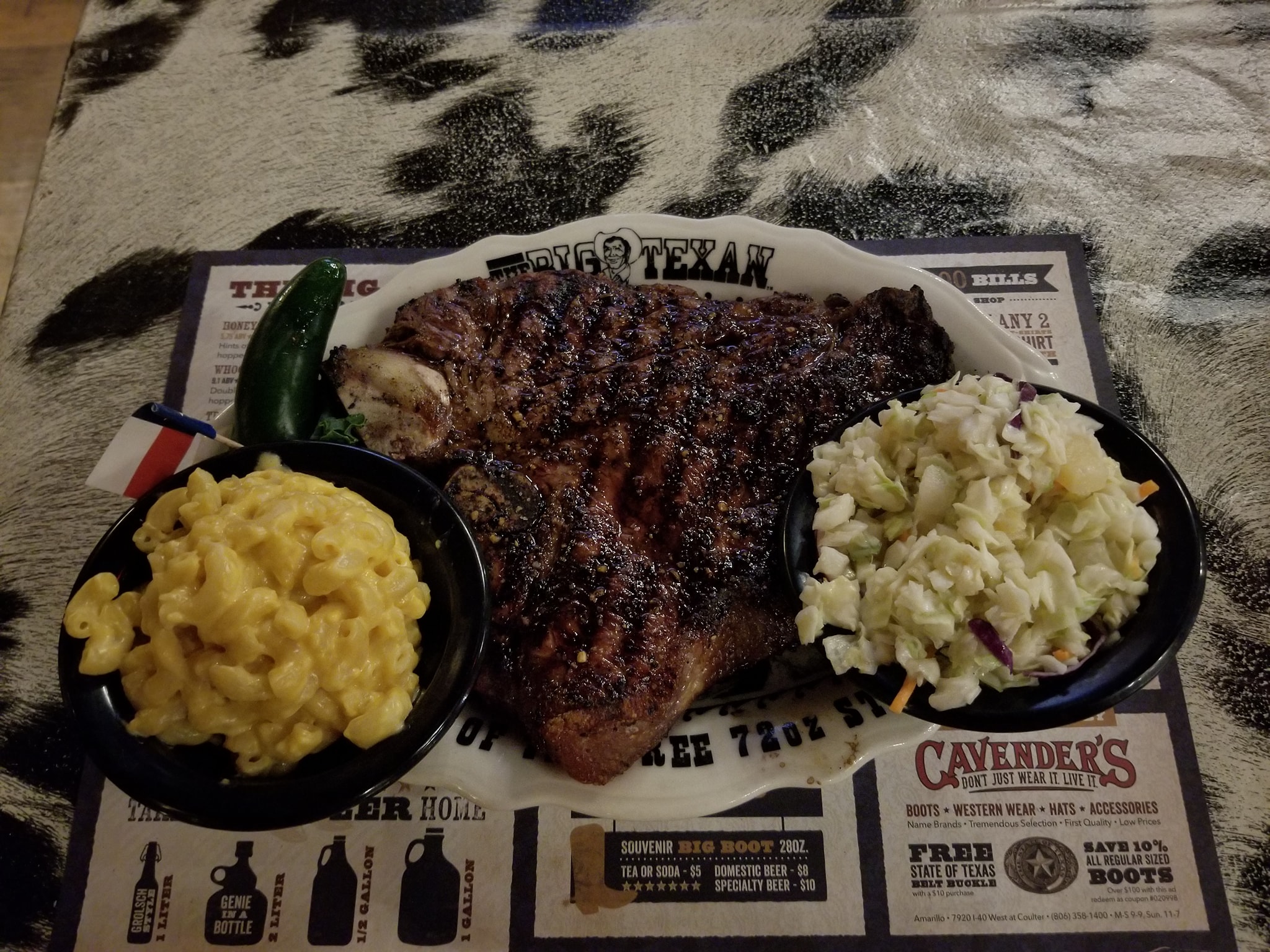 And had to stop through again…since it’s on the way…and open… and…well…its Big Texan Steak #OnTheMenu 30oz T Bone with Cole slaw and mac and cheese #WashedDown with a @TheBigTexan Rattlesnake IPA . Steak…yes…temperature was a little off…but overall…not too bad…slight char on the meat gave it the flavor… it there was more fat than usual. Mac and cheese was a little average at best…cole slaw…nah…felt adventurous cuz it had pineapples…but didnt really help the flavor. I can say I still got full. Maybe next time I’ll do the big steak. #FoodMission #SteakAndBeer #WheresNate #RoamingAmarillo