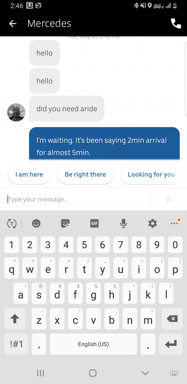 When you get an uber and it says 2min…and 5min later you get a message like this. 10min later you complain…like why accept a ride when you busy not doing uber stuff…and they say you shoulda canceled then. #WheresNate #RoamingSanDiego